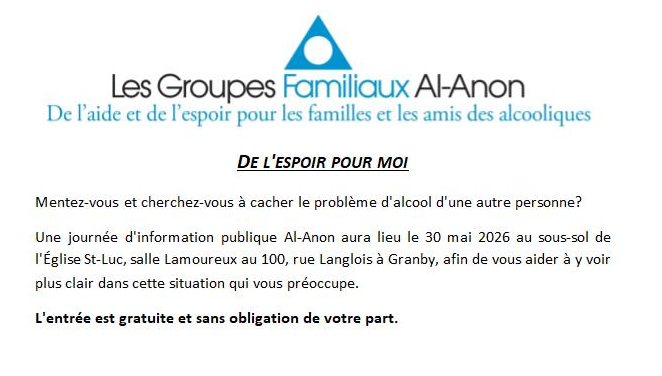 Information publique (30 mai 2026) Journée d’information publique samedi 30-mai-2026 de 8h30 à 16h. (Reçu le 11 avril 2026 12:58)