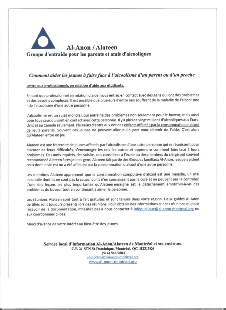 Groupe d'entraide pour les parents et amis d'alcooliques et pour les personnes ayants été affectées par la consommation d'alcool d'une autre personne.